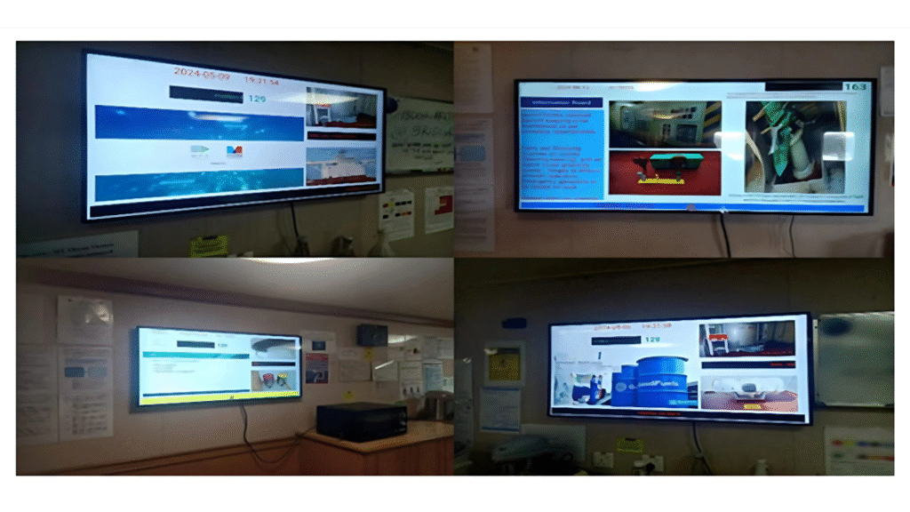 Improves crew and passenger engagement through interactive and informative content, fostering a safer and more informed maritime environment. Reduces communication delays and enhances operational coordination, contributing to smoother voyages. The system's flexibility and scalability make i t adaptable to various vessel types and sizes, optimizing onboard communication strategies.